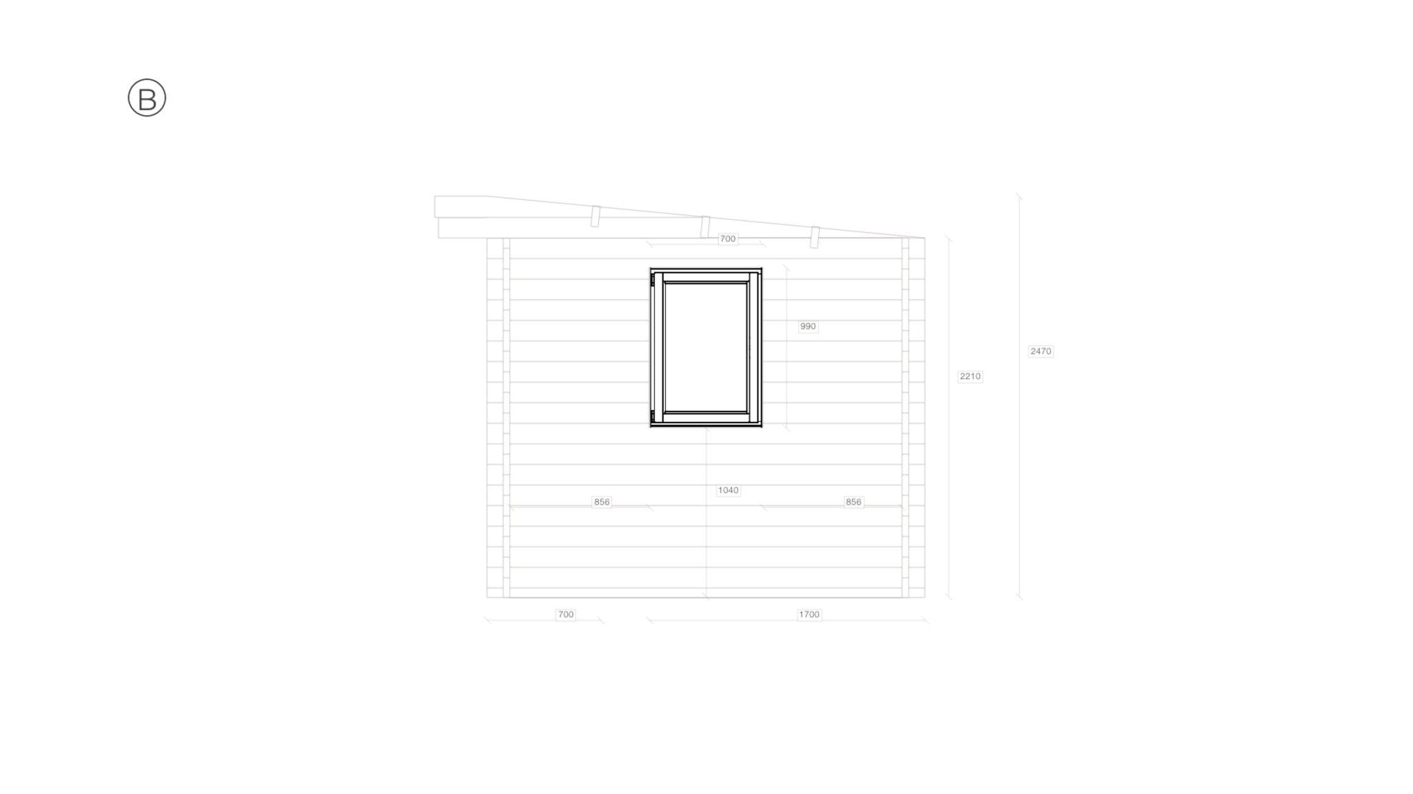 Manufactured to order, this compact design encompasses 8.2m² of interior space within 2.7m x 3.7m external walls. The 44mm solid log walls frame an internal volume of 2.4m x 3.4m with 2210mm sidewalls and a ridge height of 2470mm under the pent (mono-pitch) roof. Fenestration comprises 1 window and 1 door arranged per the specified floor plan, all beneath a 5.8° pent roof covering 11.7m². No off-the-shelf components are used in this garden room; every element is cut and machined to the project-specific measurements, delivering a truly bespoke result for the dealer and their end client.